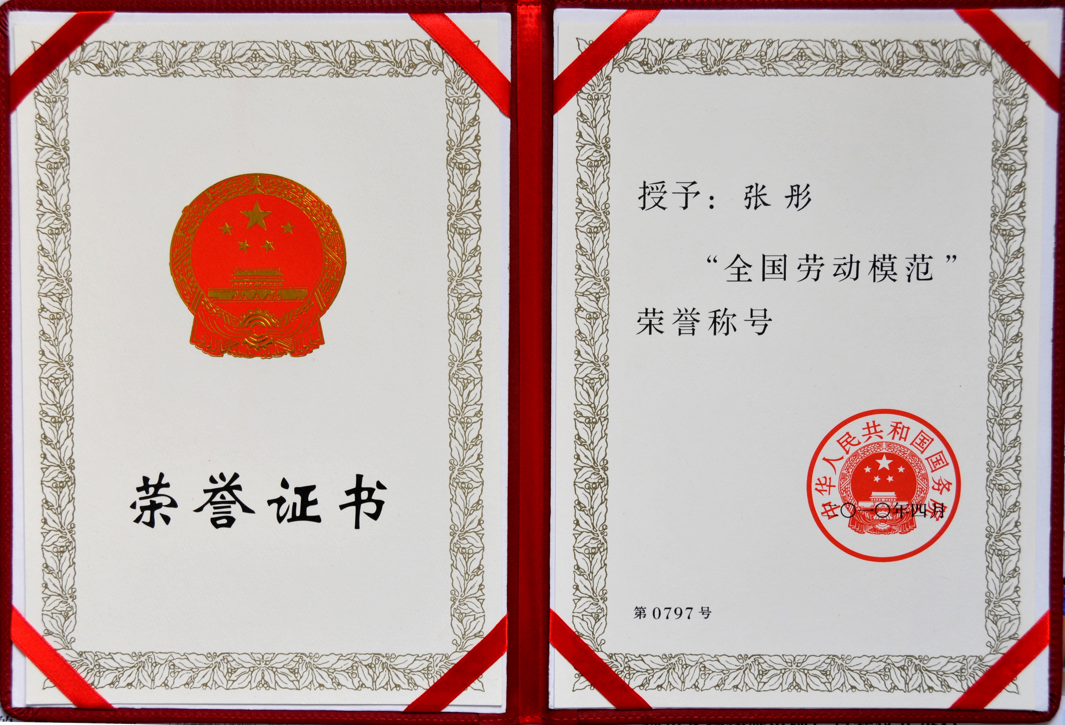 張彤榮獲全國(guó)勞動(dòng)模范稱(chēng)號(hào)