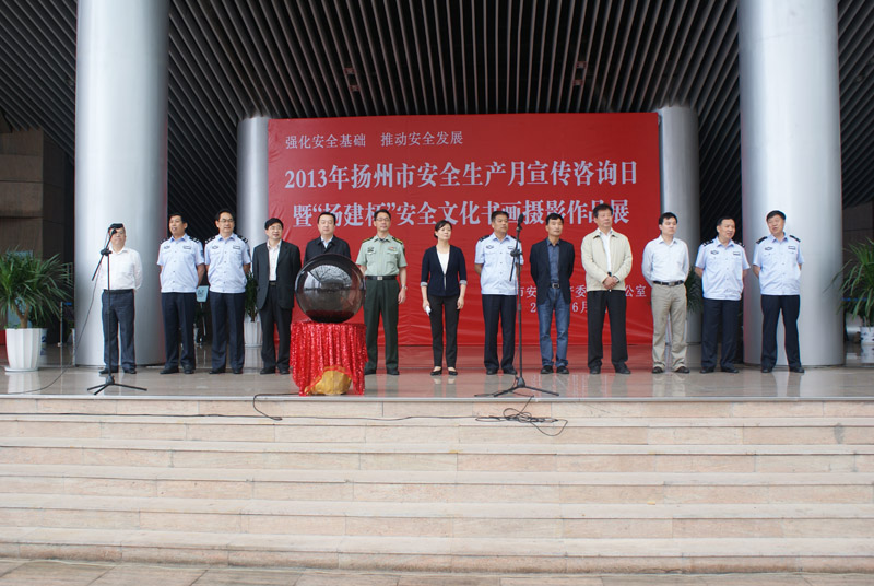 6月9日上午,2013年揚(yáng)州市“安全生產(chǎn)月”宣傳咨詢?nèi)蒸?ldquo;揚(yáng)建杯”安全文化書(shū)畫攝影作品展在市美術(shù)館北門廣場(chǎng)舉辦。副市長(zhǎng)張寶娟出席了當(dāng)天的活動(dòng),并和廣大市民一同參觀安全文化書(shū)畫攝影作品。市安監(jiān)局、交通局、公安局、建設(shè)局、氣象局、質(zhì)監(jiān)局等單位領(lǐng)導(dǎo),以及部分駐揚(yáng)單位職工代表,共計(jì)400余人參加了活動(dòng)。