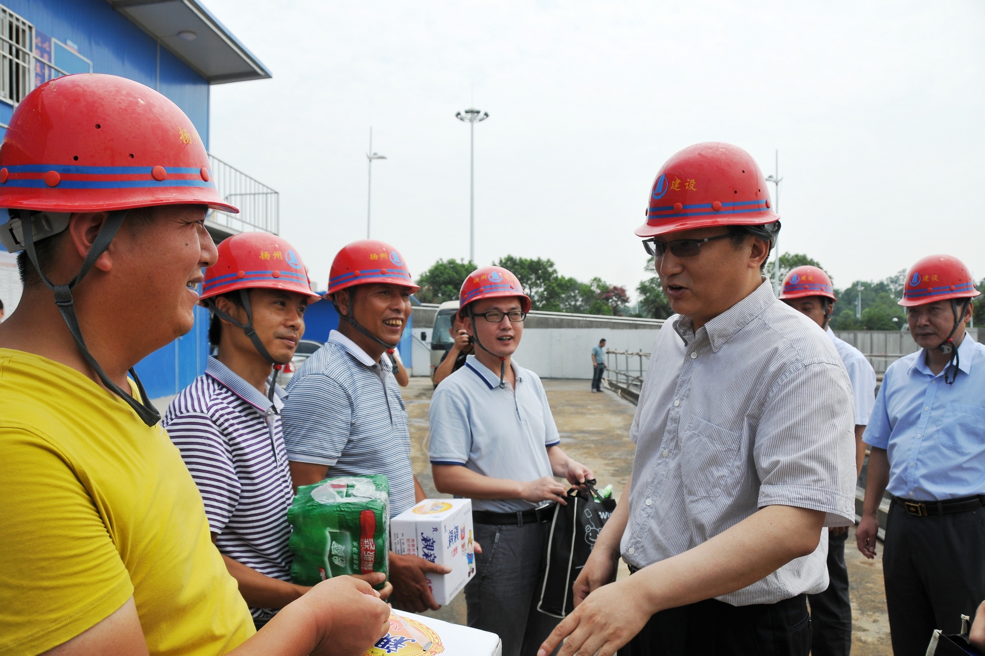 8月1日上午,揚(yáng)州市副市長(zhǎng)丁一在市安監(jiān)局局長(zhǎng)熊佳芝、市交通運(yùn)輸局黨委書記尹建平等陪同下,來(lái)到揚(yáng)州西部交通客運(yùn)樞紐建設(shè)工地,看望慰問(wèn)高溫下堅(jiān)持作業(yè)的建設(shè)者,并發(fā)放了毛巾、飲料、八寶粥等防暑降溫慰問(wèn)品,感謝他們?yōu)槌鞘薪ㄔO(shè)作出的貢獻(xiàn)。