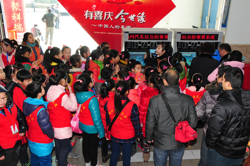 1月22日,來(lái)自揚(yáng)州報(bào)業(yè)傳媒集團(tuán)的60多名小記者來(lái)到揚(yáng)州汽車站,觀看了GPS監(jiān)控中心、售票大廳和自助售票機(jī)工作情況,體驗(yàn)了車站安檢、檢票工作,并采訪了揚(yáng)汽集團(tuán)總經(jīng)理、黨委書記吳忠俊……他們?cè)诂F(xiàn)場(chǎng)親身體會(huì)了繁忙而和諧的2014年春運(yùn)。