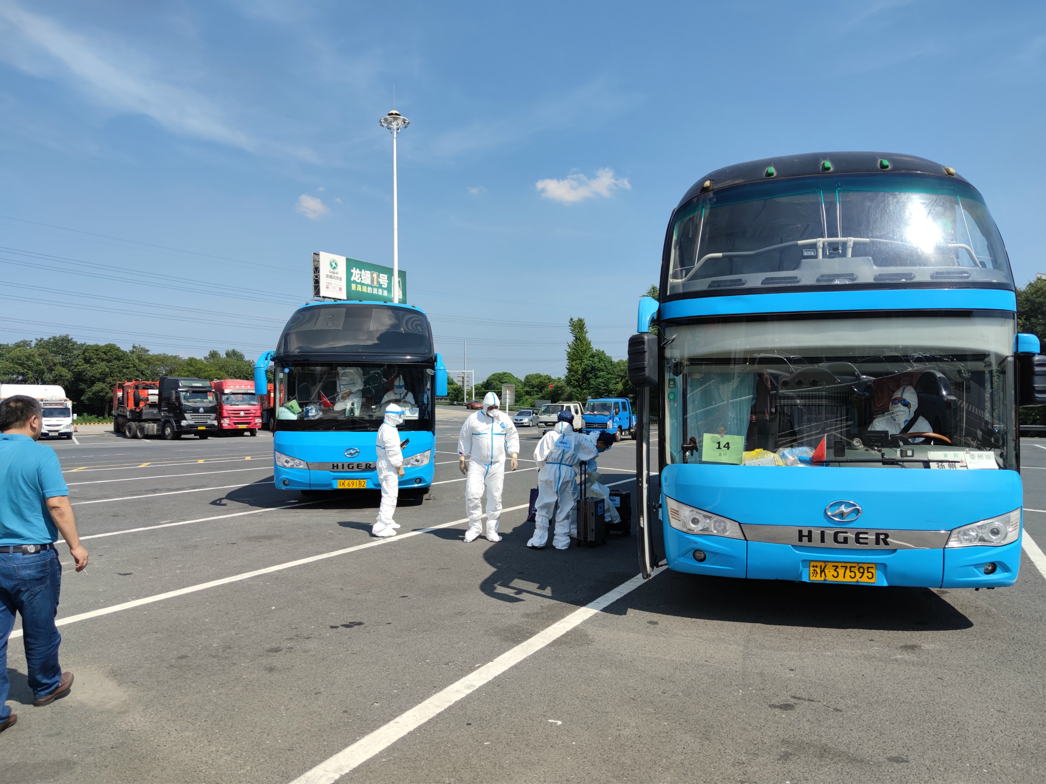 當天氣溫達到36度,機坪溫度更是超過50度,在這種酷暑下,駕駛員全身穿戴密閉的防護服,對行車安全是巨大的挑戰(zhàn)。龔宇峰董事長趕赴現(xiàn)場,再次對駕駛員抗高溫,保安全進行了交代。中午11時40分,首批車輛從機場出發(fā),至14時11分最后一批車出發(fā),將二百多名境外返揚人員運送至相關(guān)酒店。16時50分,所有車輛圓滿完成任務(wù),回到指定地點,接受消毒和檢測。