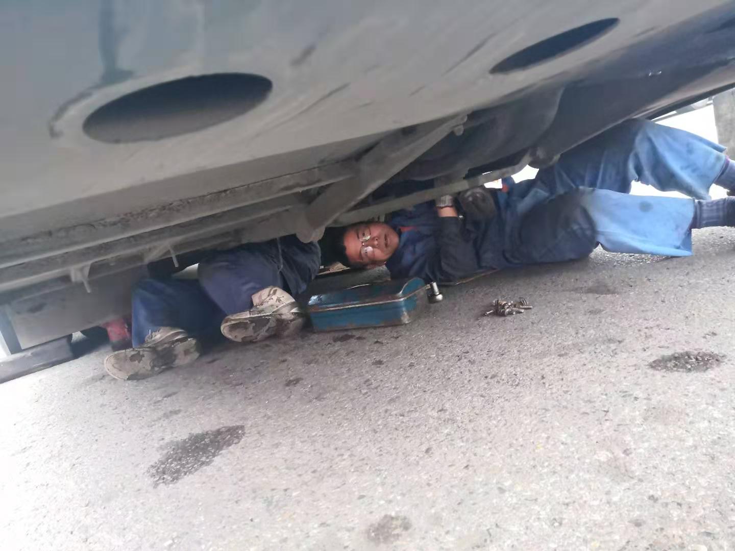 11月21日上午客服總調(diào)親自帶隊,修理廠派出維修精英4人,于11:30抵達。此時天空不作美,寒風(fēng)刺骨摻和冰冷雨水,搶修環(huán)境更為惡劣,為盡快恢復(fù)班次,師傅們顧不上吃飯,便開始搶修工作,從變速箱附件拆卸、安裝,變速箱落地、吊裝,分離軸承更換、潤滑,每個步驟環(huán)節(jié)都井然有序,連續(xù)作業(yè)3小時后,于下午14:30搶修成功。此時,師傅們才放心的吃了飯,穿著濕透的工作服返回揚州。他們在平凡的工作崗位上,用辛勤的汗水,展現(xiàn)了揚汽人默默奉獻的精神。