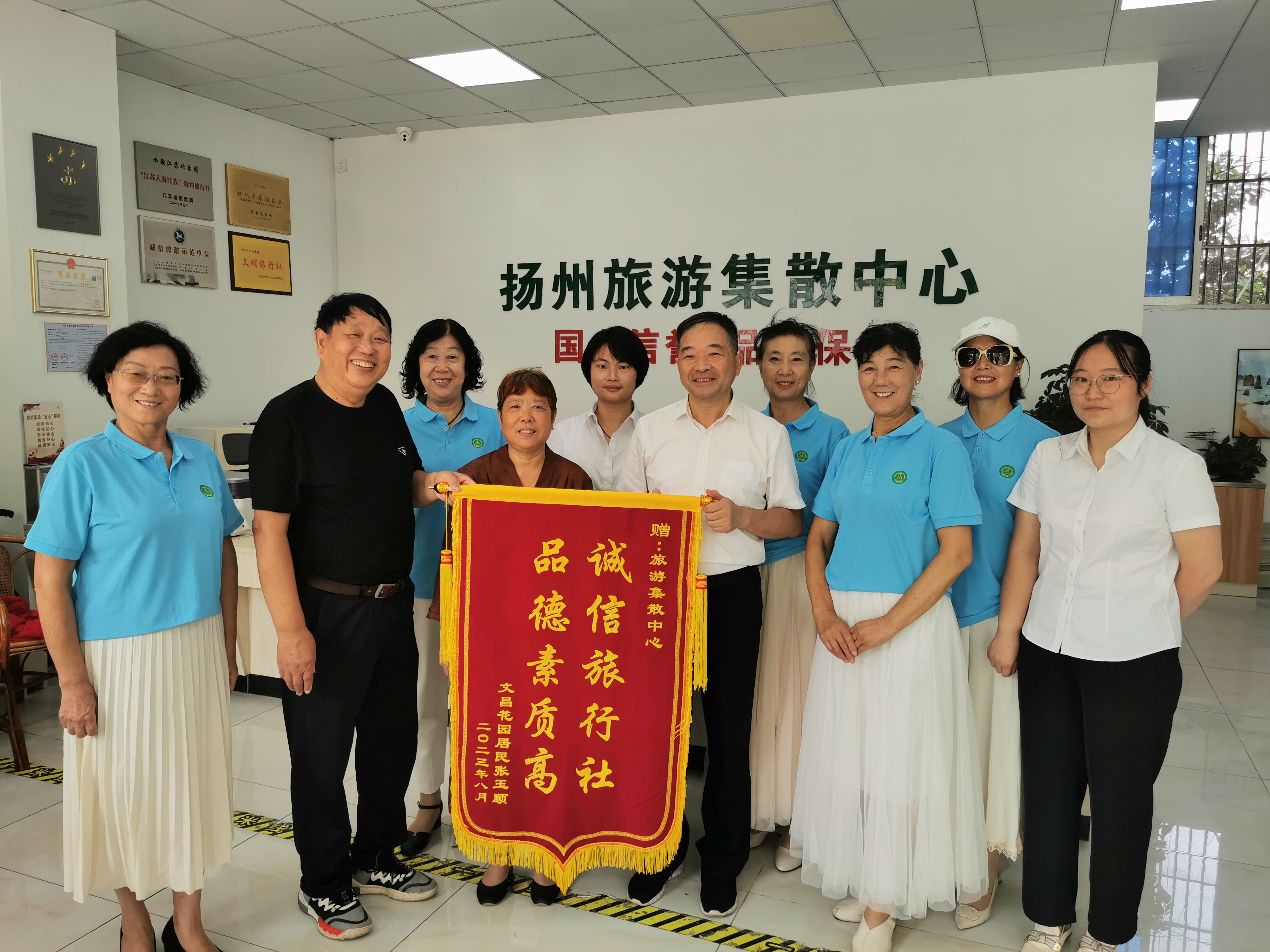 揚(yáng)州旅游集散中心始終堅(jiān)信只有真誠(chéng)細(xì)致的服務(wù),才會(huì)讓旅行更有溫度。“誠(chéng)信旅行社,品德素質(zhì)高”、“真心為民服務(wù)、傾心替民解憂(yōu)”這兩面紅底金色的錦旗承載著游客對(duì)集散中心的認(rèn)可,凝聚著彼此之間真情與感恩,激勵(lì)職工不斷提升業(yè)務(wù)能力,時(shí)刻為游客解憂(yōu),樹(shù)公司品牌!
