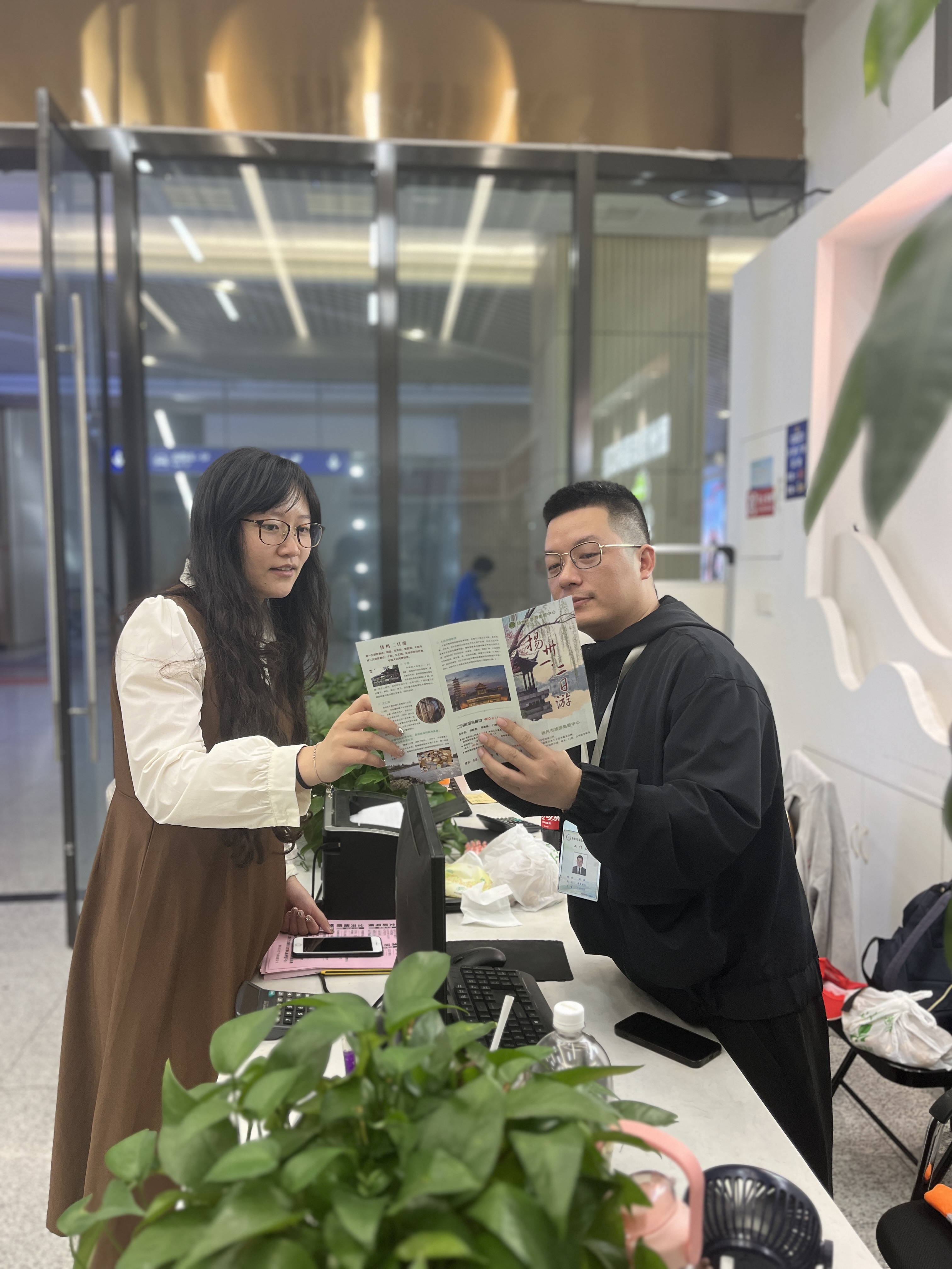 唐正求、王文玉等三人從重慶來到揚(yáng)州旅游,一下高鐵,便受到集散中心門市工作人員的熱情接待,接待人員耐心地為他們推薦揚(yáng)州美景、美食等,詳細(xì)介紹各個(gè)景區(qū)宣傳圖冊(cè)。工作人員一邊表達(dá)著揚(yáng)州城對(duì)他們的歡迎,一邊遞上熱水請(qǐng)他們就座,把旅游相關(guān)的各類注意事項(xiàng)都一一做了講解。他們?cè)诮Y(jié)束揚(yáng)州的旅游行程后,專程來到高鐵站門市致謝,但是由于把投訴記錄本錯(cuò)當(dāng)成了游客意見表,便出現(xiàn)了這樣一封特殊的“致謝信”。